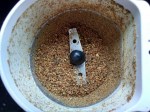 Heat the remaining oil in the pan add the mustard seeds, when it starts spluttering, add the 2 chillies, peanuts and curry leaves. once the peanuts are fried add the grounded paste and stir.Cook till you get a thick paste and the oil starts separating.(cover and cook to avoid the paste spluttering all over.) Now mix in the powder of sesame seeds and pepper.