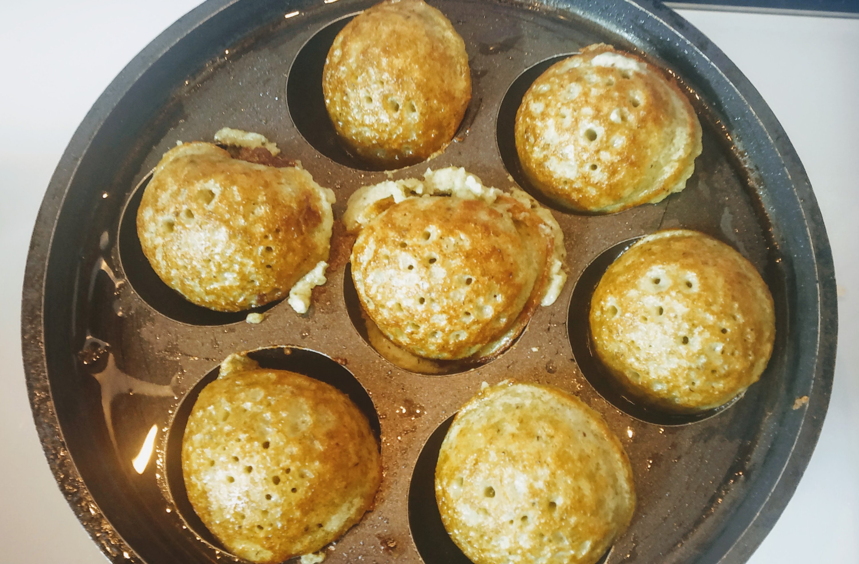 Soak rice for an hour and grind it into a smooth batter. Add this to pesarattu batter with salt, mix well. Allow it to rest for half an hour. Heat the paniyaram pan with some oil, pour ladleful of batter in each hole,cook for a minute.Then turn and cook on the other side. Moong dal paniyaram ready.