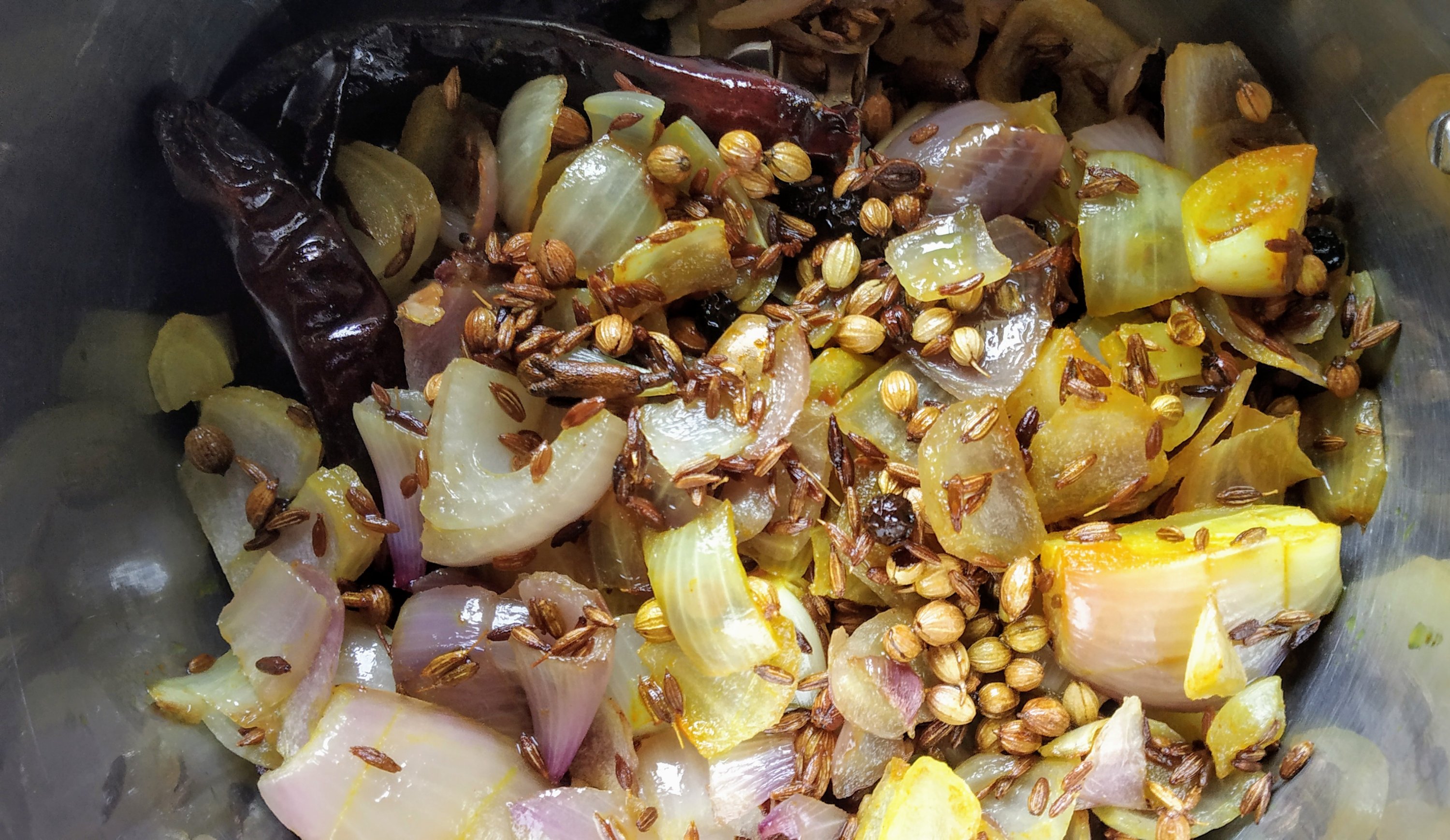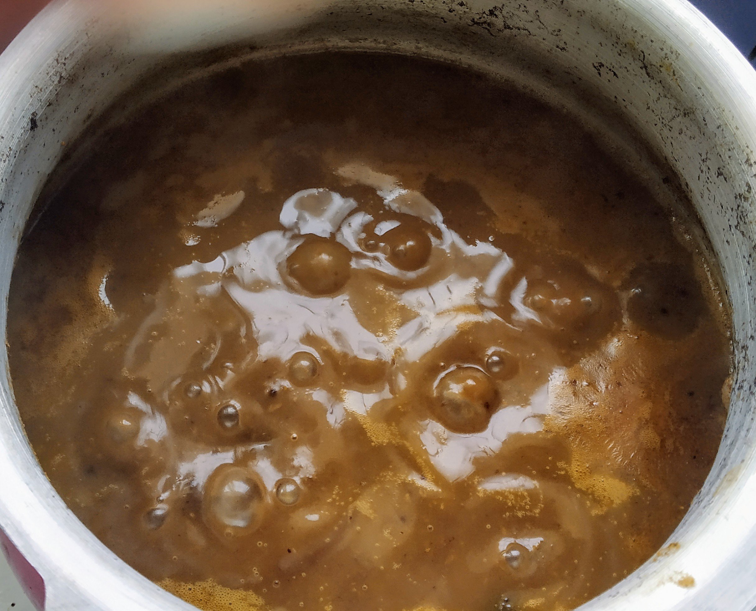 Wash and soak the kadalai overnight or for minimum 7 hours. Pressure cook the kadalai. Heat 1 spoon oil ,add the clove and cinnamon,when you get a nice aroma add the red chili,coriander and cumin seeds and fry till they change colour,add the chopped onion and saute them till they turn pink in the colour,put of the heat. Cool it and grind it along with turmeric and salt. Heat the remaining oil ,add the mustard seeds,when they crack add the asafetida,curry leaves and slowly add in the grounded paste,give it a stir and allow it cook till you see the oil oozing out. Add this gravy to the cooked kadalai, add 1/2 glass of water and allow it to boil for 7-8 mintues. Kadalai is ready.
