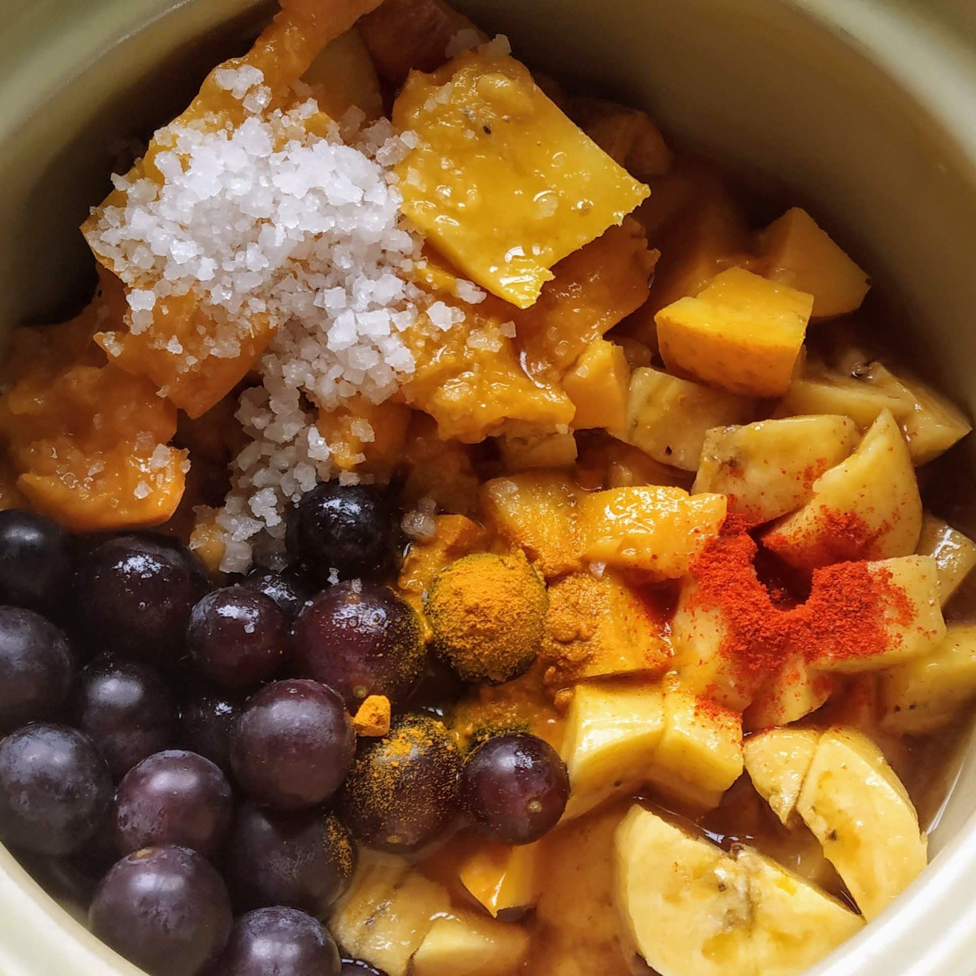 Mixed fruits–grapes, mango, pineapple,nedram pazham —–2 cups