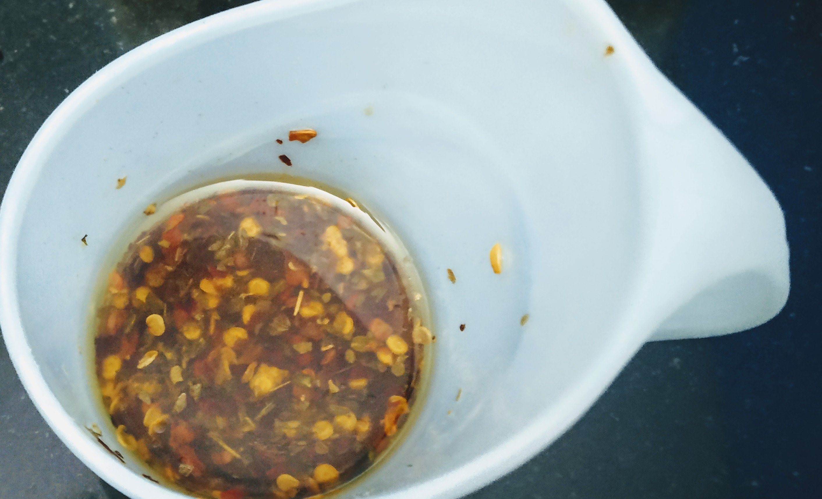 1 tablespoon – olive oil, 1 tablespoon – honey, 1 tablespoon – oregano , 1 teaspoon – chili flaxes & 2 tablespoons lemon juice.