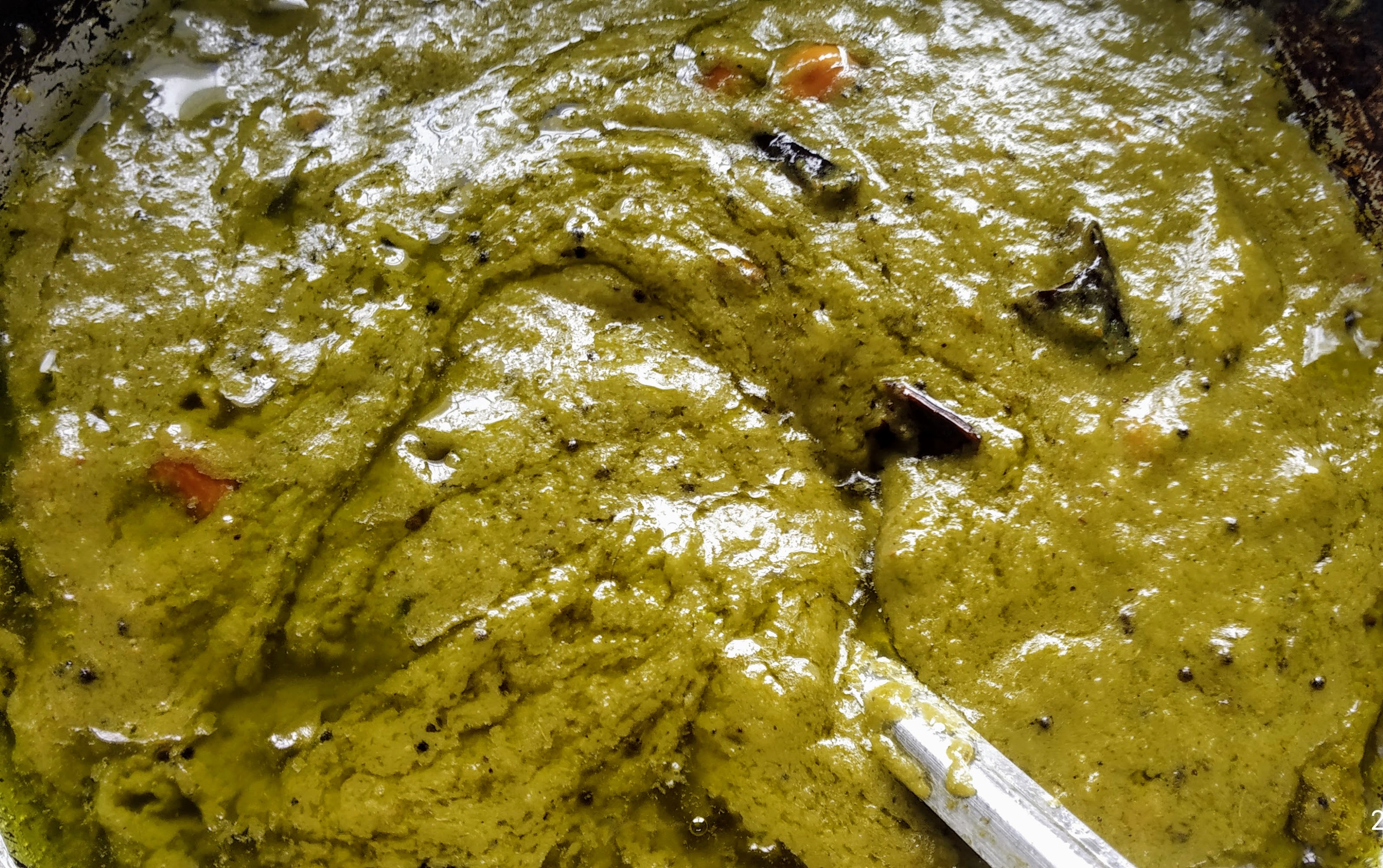 Rinse and cook rice. Once rice is cooked, spread it on a plate and allow to cool. Wash the coriander leaves well. Heat one tablespoon of oil and fry channa dal, urad dal, cumin and pepper till the dal turns red in color . Now grind the fried ingredients along with green chili, tamarind and fresh coriander adding half a glass of water. Heat the remaining oil in a pan and add mustard seeds . When they crackle, add the broken red chili, peanut and fry . Now add the paste, salt, stir and cover and cook in sim until the oil oozes out. Once you see the oil oozing out, put off the heat. Add this to the cooled rice and mix well. Enjoy coriander rice with papadam or chips.