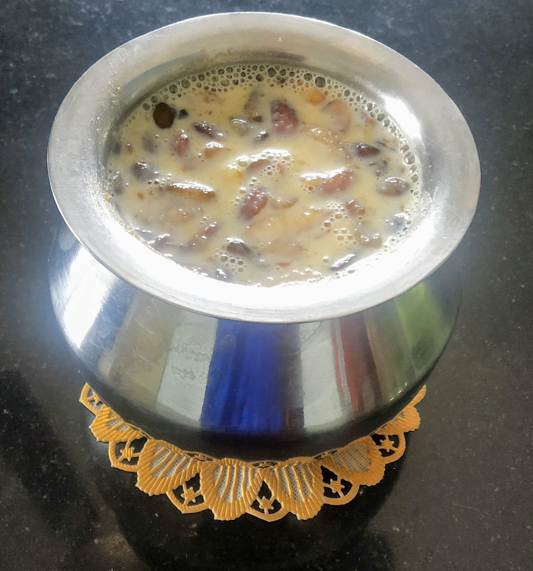 Being Durgaashtmi, I wanted to make something different for naivedyam. Two days back I overheard my mother chatting with her long time friend- Manni , as she is fondly called by everyone in our family. Manni was telling my mother that she prepared kadalai mavu payasam for naivedyam. So here’s my take on kadalai mavu payasam. Dedicating it to the everlasting friendship of my mother and Manni.