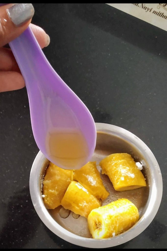 The most healthy snack which can be had anytime of the day. Simply steam the nedrapazham with the skin for 5 mnts peel the skin drizzle some honey and have it or just the cut the nedrapazham into thick slice heat 2 tbsp ghee in a pan and roast till slightly brown on both the side have it with or without honey. If you have a sweet tooth, add some jaggery to the pan along the ghee, roast and have nedrapazham nurukku.