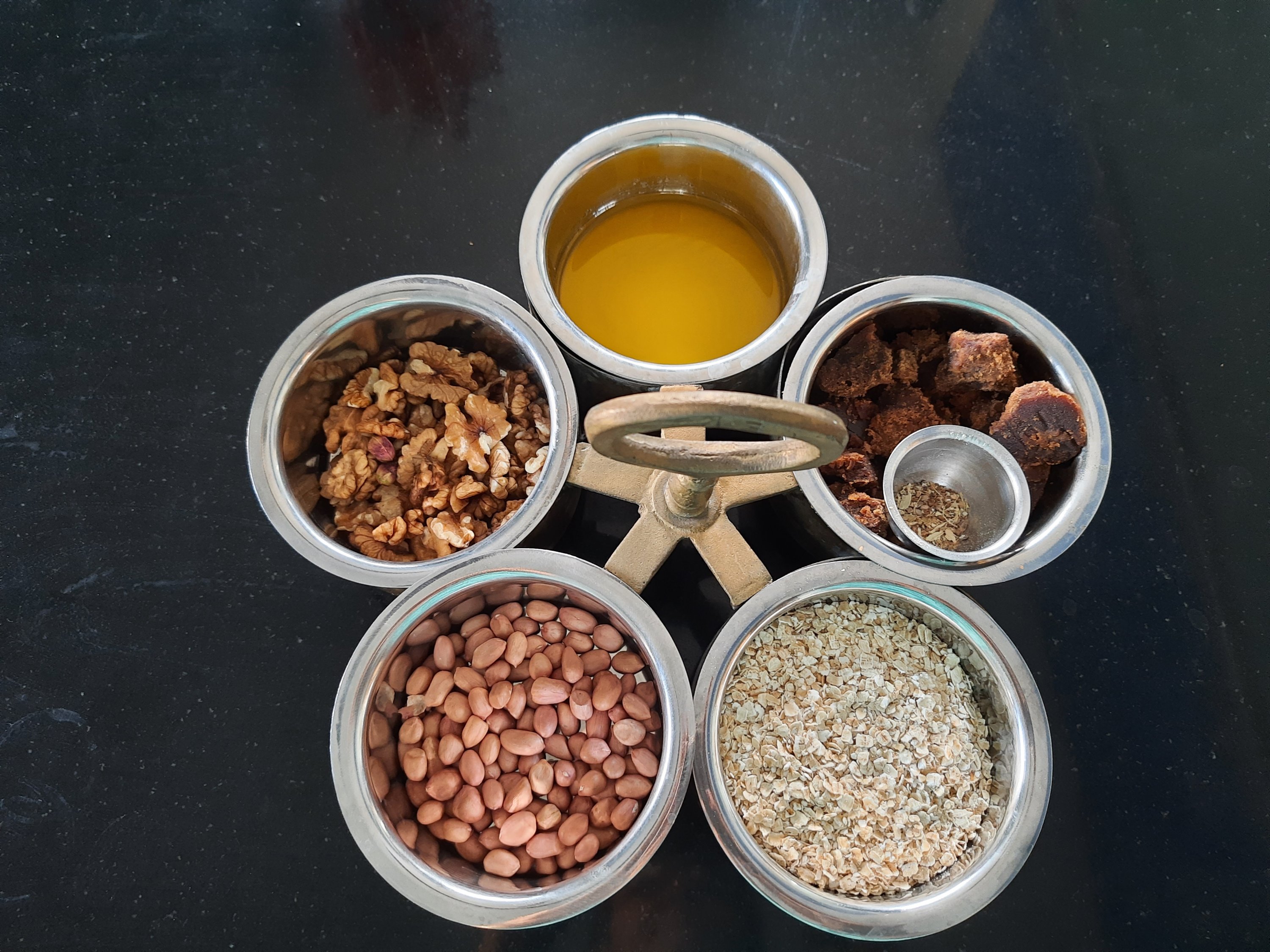 A ladoo that’s easy and quick to prepare and healthy. Make it, store it and whenever you feel hungry just have one. This ladoo is equal to any health bar that one buys.