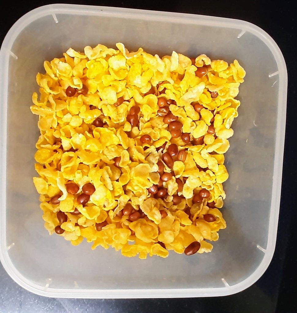 Method :– Heat oil in the a pan. Deep fry the raw Cornflakes. Next deep fry the peanut. Mix the fried Cornflakes and fried peanut. Enjoy Cornflakes mixture.