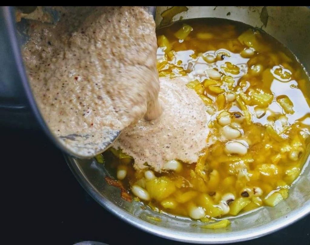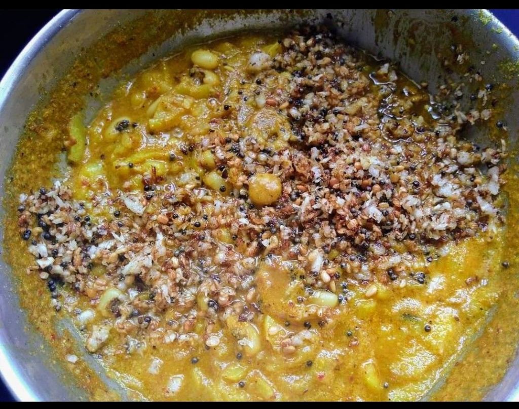 Cook cut jackfruit with turmeric , red chilli pwd ,salt and ½ a glass of water. Grind together ½ cup coconut, dried red chillies, pepper and cumin seeds into a fine paste. Once the jackfruit are soft and cooked add in the cooked cowpeas and allow it to cook for 2 mnts. Now add the grounded paste and cook again for 5 mnts. Heat the coconut oil in a pan add the mustard seeds, when they start to splutter add the urad dal , once the dal changes colour add the curry leaves and the remaining coconut and fry till the coconut turns red, add this to the cooked curry and your Chakka Erissery is ready.