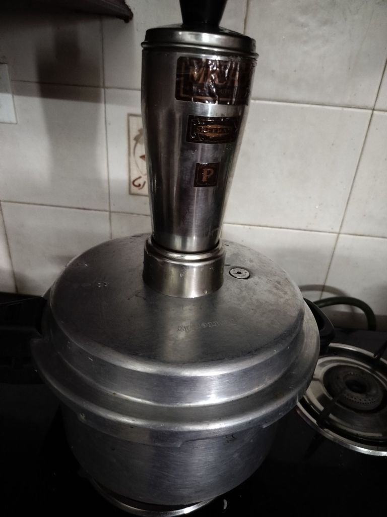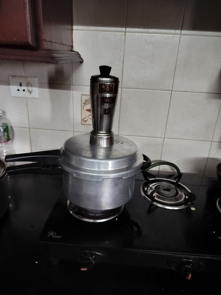 Just buy readymade putta powder and just follow the instructions given in the packet, mix it and keep aside for 5mnts. Now take a cooker and fill the cooker with 1/4 water. Now if you have putta maker it fill the powder and steam it for 5mts. Cool it and push it below. Alternatively if you don’t have a putta maker , make balls and steam it for 5mts. Putta ready.
