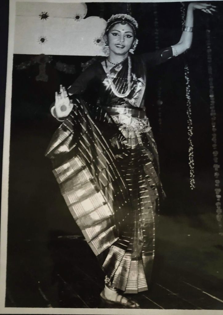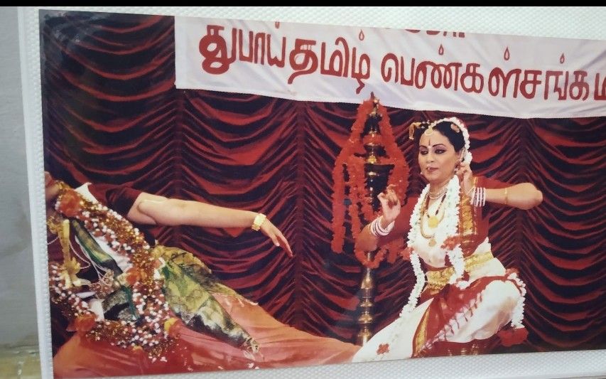 I have learned classic dance.Before marriage I used to perform . After marriage I moved to Dubai. My father-in-law was encouraging and made me perform in the Fine Art Association, Dubai. Then they left Dubai, I joined the Tamil Ladies Association. There my friends Meenakshi and Girija encouraged me to perform. Then the practice and performance.